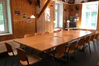 Wir haben ein tolles Planungswochenende für unsere Ferienfreizeit gehabt ! Das Haus ist im Jagdhaus - Stil und ein wenig "altbacken", aber die Toiletten und duschen sind nagelneu und das ganze Haus war sauber ! Wir waren nur mit 16 Personen dort, sollte man wirklich mit 29 Personen dorthin fahren, wäre es ratsam, den Keller dazu zu buchen ( den haben wir allerdings nicht gesehen ), denn sonst wird`s im Aufenthaltsraum bei schlechtem Wetter doch eng.