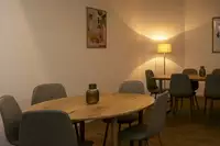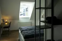 In unserer Unterkunft erwarten dich 10 gemütliche Zimmer, in denen du dich vom ersten Moment an wohlfühlst. Jedes Zimmer verfügt über ein eigenes Bad mit Dusche und WC sowie über Handtücher, Bettwäsche, Seife, Toilettenpapier, TV, Heizung, Internet, Föhn, Shampoo, einen praktischen Arbeitsplatz und einen Esstisch.Im großzügigen Gemeinschaftsraum lädt eine voll ausgestattete Küche mit mehreren Esstischen, Kaffeemaschine und allem, was du für gemeinsame Mahlzeiten brauchst, zum Verweilen ein.