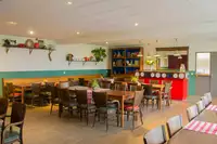 Die 13 Schlafzimmer der Gruppenunterkunft haben insgesamt 80 Betten. Hier befinden sich Waschräume, Duschen und WCs. Die Aufenthaltsräume befindet sich im Erdgeschoss. Eine schöne Terrasse sowie ein Grillplatz und eine Lagerfeuerstelle sind vorhanden. In Absprache kann 'Onder de Hooizolder' als extra Festsaal genutzt werden.