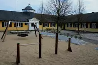 Großes Gruppenhaus im Norden von Dänemark an der Ostküste auf einem 60000 m² großen Wassergrundstück mit eigenem Strand, Ort Ebeltoft, auf dem Gelände befinden sich ein Bolzplatz, Terrassen mit Außensitzmöglichkeiten, Tischtennisplatte, Spiel- und Liegeflächen, eine Feuerstelle mit Grill, ein Glockenturm, ein Spielplatz im Innenhof mit Schaukeln, TurnstangenAusflugsziele