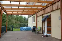 Das Haus ist sehr schön und wirklich sehr sauber! Es liegt direkt an der Nahe. Von der Terrasse aus kann man den Blick (überdacht!) genießen! Die Küche ist vollständig ausgestattet und auf dem großen Edelstahltisch in der Mitte kann man super gemeinsam größere Mengen kochen. Wir habe dort ein sehr schönes langes Wochenende verbracht und freuen uns schon aufs nächste Mal! Vielen Dank an alle Mitarbeiter, die uns das ermöglichen!