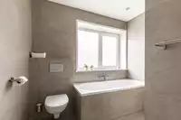 Da sich im Erdgeschoss zwei Schlafzimmer, ein Badezimmer und eine Toilette befinden, ist dieses Haus möglicherweise auch für Familien mit wenigen Personen mit eingeschränkter Mobilität geeignet.
