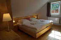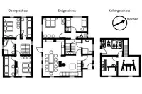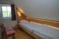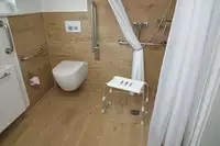 Der Zugang zum Haus ist barrierefrei, auch das Bad im Erdgeschoss. In einem Schlafzimmer im EG befindet sich ein elektrisch verstellbares Bett, vor dem ausreichend Platz zum Navigieren mit einem Rollstuhl besteht. Eine Begleitperson kann im gleichen Raum übernachten.
