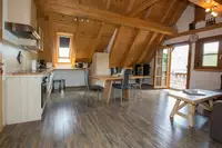 Unser Aufenthaltsraum wird gerne von größeren Gruppen gebucht, die in einer Ferienwohnung nicht genügend Platz finden, um gemeinsam zu kochen und Zeit zu verbringen.