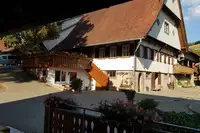 Die Ferienwohnung FALKENNEST im Dachgeschoss des Leibgedinghauses. ist 70 m² groß. Sie hat ein geräumiges Schlafzimmer mit einem Doppelbett und einem Einzelbett (1,40 x 2 m), ein kleines Zimmer mit einem Kinderbett (0,90 x 2 m), ein Bad mit Dusche und WC. Außerdem verfügt Sie über einen geräumigen Wohn- und Essbereich mit einer Leseecke und einer komfortablen, ausziehbaren Schlafcouch (1,60 x 2 m). Vom Dachfenster des Schlafzimmers haben Sie einen herrlichen Blick ins Harmersbachtal bis zur Burgruine Geroldseck. Die Wohnung befindet sich im Dachgeschoss des Leibgedinghauses. Sie ist über 2 Treppen erreichbar und somit nicht barrierefrei. Die Wohnung verfügt über einen Balkon (2,50 x 7,50 m) mit Blick ins Grüne.