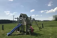 Weitläufiges Gelände mit Spielplatz und Außensauna