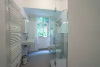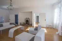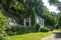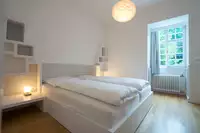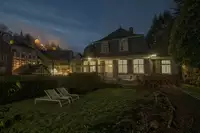 Die Villa verfügt über 5 Schlafzimmer (eins mit zusätzlichem Schlafsofa), 4 Badezimmer, ein großes Wohnzimmer, Loungebereich mit zusätzlicher Schlafmöglichkeit für 2 Personen, Esszimmer, Küche und angrenzende Terrasse mit Grill. Maximale Personenzahl 12.Der 2000 m² große, parkähnliche Garten mit Teich und Zugang zum Fluss (Fliegenfischen) bietet unterschiedlichste Bereiche und Ebenen mit diversen Sitzmöglichkeiten. Der auf dem Grundstück befindliche Barockpavillon stammt aus dem Jahre 1760. Er fungierte als Gartenhaus der auf dieser Flussseite angelegten Scheiblerschen Gärten.