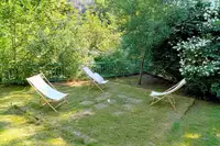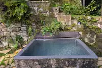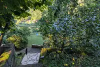 Gartenbereiche rund ums Haus – vorne, hinten, unten. Mit Sitzplätzen, Liegewiese, Quellwasserbecken.