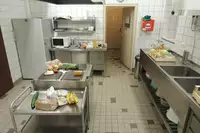 Die Zimmer im ersten Stock haben alle ein Waschbecken im Zimmer. Duschen und Toiletten auf jedem Flur. Zweckmäßig ausgestattete Selbstversorgerküche, 1 Speiseraum, großer Rittersaal im 2. Stock und 1 kleiner Aufenthaltsraum,