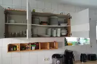 Das Gästehaus befindet sich in einem ruhigen Wohngebiet mit freundlichen Nachbarn und bietet drei Etagen:Erdgeschoss (EG): Hier befinden sich die Küche, ein Aufenthaltsraum, ein Schnarcherraum und der Waschraum. Auf Wunsch der Gäste planen wir, im EG eine neue Dusche und ein WC einzubauen.