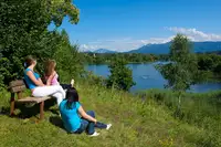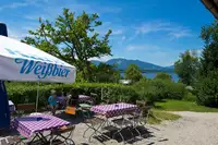 Der Campingplatz auf der Insel Buchau ist nur mit dem Boot zu erreichen – mit dem eigenen oder mit der „Fischerin“, welche im 80 Minuten Takt die Campinginsel Buchau anfährt.Autos und Wohnwagen gibt es auf der Camping Insel Buchau ebenso wenig wie abendliche Disco. Dafür einen wunderschönen kleinen Biergarten, malerische Aussichten und, wenn die Abendsonne den Himmel über den See in allen Farben leuchten lässt: Romantik pur.