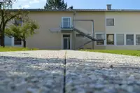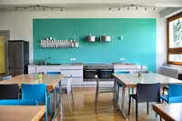 Helle, ruhige Gästezimmer bieten Platz für 69 Übernachtungsgäste. Sie wurden mit modernen Bädern (Dusche/WC en Suite) ausgestattet und können als Einbett-, Zweibett- oder Mehrbettzimmer verwendet werden. Zwei Appartementeinheiten für jeweils 6 Personen bestehen aus 2 getrennten Zimmern (gemeinsames Bad, separates WC), ein weiteres Zimmer mit 8 Betten besteht ebenfalls aus 2 getrennten Zimmern (gemeinsames Bad). Den Gästen steht auch eine helle und großzügige Gemeinschaftsküche zur Verfügung.Das Gebäude wird von einer großen Gartenanlage mit Beachvolleyballplatz, Basketballkörben und Kleinfußballfeld umgeben und liegt in einer der schönsten Regionen Süd-Kärntens inmitten von Bergen, Seen und Natur. Kleiner Kinderspielplatz mit Schaukel und Klettermöglichkeit vorhanden. Das Outdoorangebot wird von einer Feuerstelle abgerundet.