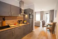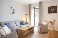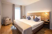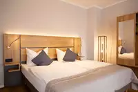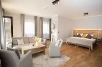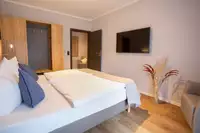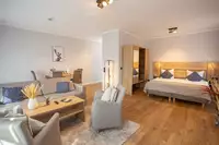 Unsere Studios bieten jeweils ein Doppelboxspringbett und ein komfortables Sofa. Das Apartment bietet ein liebevoll eingerichtetes Kinderzimmer mit gemütlichen Betten und für die Eltern ein geräumiges Schlafzimmer mit Kingsize-Boxspringbett. Eine Schlafcouch im Wohnzimmer bietet Platz für 2 weitere Personen.