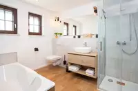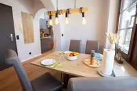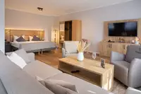 Willkommen in der Family Wellness Suite im Chalet Bergzeit in Hohegeiss – ideal für größere Familien, die eine kinderfreundliche und luxuriöse Unterkunft suchen.Insgesamt bietet die Unterkunft Platz für bis zu 12 Personen in einem Apartment und zwei Studios. Das Highlight ist der Whirlpool auf der privaten Terrasse. Genieße Deine Auszeit bei jedem Wetter. Es besteht die Möglichkeit, weitere Studios hinzu zu buchen, um mit größeren Gruppen zu reisen. Bis zu 24 Betten können wir zur Verfügung stellen.