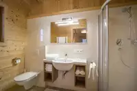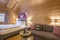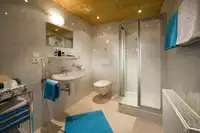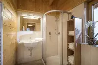 - Das Untergeschoss bietet zwei Vollholzschlafzimmer für je 3 Personen, Dusche/WC, sowie einen Abstellraum mit Schuhtrockner.