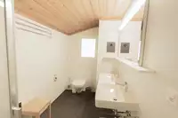 Für eine ungeteilte Gruppe bis 19 Personen im Speisesaal Verpflegung möglich. Wohnungen 1. und 2. Stock genügen zum Schlafen, Dusche EG mitbenützt. Der Weg von Acla da Fontauna oder Coop bis zum Chalet ist recht lang, aber machbar. Mit Auto Einkauf natürlich leichter. Sonst ruhig gelegen und gut eingerichtet.