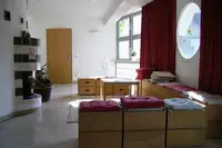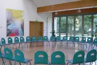 Werkraum, TT-Keller, Partykeller, Kaminzimmer, Meditationsraum, Dia-/Overheadprojektor, Beamer, Kopierer, TV/Video, w-lan Ballspiele, TT-Platte, Fußballkicker, Klavier, Gesellschaftsspiele Teamspiele, BillardMit der Neugestaltung unserer Außenanlagen, verfügt das Haus über eine große Spiel- Landschaft, einen kombinierten Fußball- und Basketballplatz und eine 'grüne Schule.