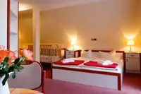 47 Betten in freundlichen, ruhigen Einzel- Doppel oder Mehrbettzimmern (17 Betten im Ungebindehaus mit fließend warmem und kaltem Wasser und Etagendusche/WC und 30 Betten im barrierefreien Neubau mit DU/WC/Telefon) - Speisesaal "gemütliche Umgebindehausstube", 1 Teeküche, 4 behindertengerechte und 12 behindertenfreundliche Zimmer, 2 Pflegebäder mit Trockenraum, Kinderbetten mit Kinderstühlchen, Wickeltisch. Gruppenräume: 3 Aufenthaltsräume mit TagungstechnikFreizeit