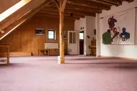 Die geräumige Diele im EG dient als Speiseraum für ca. 40 Personen mit Kicker und Kachelofen, das Foyer mit Sitzgruppen, ein Seminarraum mit Tischen, Stühlen und Overheadprojektor sowie ein Sofaraum mit Sitzgruppen. Im OG ein geräumiger Andachtsraum mit Teppichboden, dimmbarer Beleuchtung und einfachen Hockern.