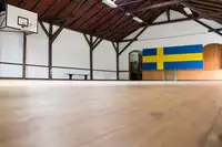 Zudem die große Aktivitätshalle mit ausreichend Platz für Veranstaltungen mit ca. 150 Personen - auch als einfache Sporthalle nutzbar. Die große Aktivitätshalle (17 x 11 m) bietet viel Platz für kleine sportliche Spiele oder für große Gruppenaktionen. Basketballkorb und Tischtennisplatte sind vorhanden, Netz beim Hausmeister erbitten, Schläger und Bälle bitte mitbringen! Das großzügige Außengelände (12.000 m)