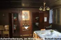 Tagesraum mit Tischen und Stühlen, Kachelofen (mit Heizmaterial) und 1 Bett (für den Leiter), 4 Schlafräumen (3x4,1x2 Betten),(Bettwäsche und Handtücher sind mitzubringen), Küche mit E- und Kohle-Herd und Kühlschrank, Abwaschtisch mit Töpfen, Geschirr und Besteck, Sanitärgebäude mit 2 Waschräumen, Becken, Duschen und Warmwasserofen, 2 WCsFreizeit