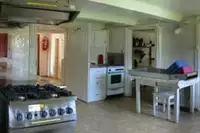 Die geräumig ausgestattete Küche ist von den Gästen in eigener Regie zu benutzen. An der Giebelseite nach Süden zu befindet sich eine Freiterrasse von etwa 50 Quadratmeter. Vor und neben dem Haus stehen ausreichend Parkplätze zur Verfügung.