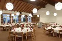 10 Seminarräume für 10–199 Personen, Dreifachsporthalle mit Kletterwand, Doppelkegelbahn, Freizeitraum mit Billard, Kicker etc., Medien, moderne Seminartechnik und Moderationsmaterial, Clavinova und Klavier, Kaminzimmer, Café und Schwebebahnbistro, Andachtsraum mit E-Piano.120 Autoparkplätze