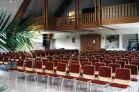 Die Räumlichkeiten in und um das Haus sind gut. Im großen Saal hallt es, so dass die Verständigung im Stuhlkreis etwas schwierig sein kann. Für Rollstuhlfahrer ist ein Zugang im unteren Bereich möglich, allerdings über einen Bordstein, wofür eine kleine Rampe nötig ist. Wir sind mit dem Haus und seinen Möglichkeiten sehr zufrieden.
