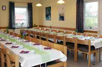 Uns hat das Freizeithaus richtig gut gefallen! Die Küche ist super ausgestattet. Die Gruppenräume hatten für unsere Gruppe mit 25 Leuten eine super Größe. Die vorhandenen Biertische und -bänke haben wir gern genutzt. Gleich nebenan ist ein Sportplatz. Die Kommunikation und alle Absprachen vorher mit den Verantwortlichen des Hauses liefen super. Als einzigen Nachteil haben wir die Akustik im Speise- und Tagungsraum empfunden, da hat sich die Gesprächslautstärke sehr schnell erhöht.