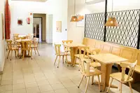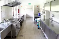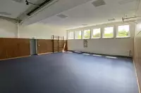 Foyer mit Sitzgruppen, Gruppen-/Tagungsraum, ca. 36 m², Speiseraum, ca. 45 m², (Groß-)Küche, Spielkeller mit Kicker und Tischtennis, kleine Turnhalle, Spielwiese, Sportplatz mit Fussballtoren, FeuerstelleBemerkungen