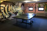 Zusätzlich steht Ihnen im Keller ein Tischtennisraum (TT-Schläger und Bälle bitte selbst mitbringen) zur Verfügung. Weiterhin befinden sich im Haus ein CD-Radio, TV/SAT/DVD-Player, Flipchart (Papier bitte selbst mitbringen) und eine Pinnwand. Im oberen Hausbereich befindet sich zudem eine fest installierte Leinwand, ein Beamer wäre selbst mitzubringen.