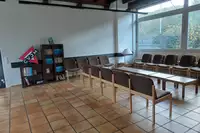 Foyer mit Sitzgruppen, Tagesraum, ca. 90 m², 3 kleinere Tagungs-/Aufenthaltsräume, Kapelle (zurzeit leider Baustelle), Speiseraum, ca. 50 m², Spielraum (Tischtennis, Kicker, Kleinbillard), Sanitäre Ausstattung - Waschgelegenheit im Zimmer, Duschen und Toiletten auf dem Flur