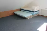 Drei Schlafräume im Obergeschoß mit je 6 Matratzen, je ein Waschbecken mit Kalt- und Warmwasser.Bei Bedarf kann im Untergeschoss ein weiterer Raum mit 9 Matratzen eingerichtet werden. Die Küche ist modern und geräumig eingerichtet. Backofen, 4-Platten-Gasherd, Spülmaschine, Rührgerät, Kühlschrank und Kaffeemaschine.