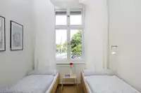 Wir waren mit einer Schulklasse dort (15-17jährige). Nette Atmosphäre, für Jugendliche tolle Zimmer, super Anbindung an Bus und S-Bahn (in 20 min am Alex) und trotzdem weit genug draußen. Tolles Frühstück und viel Entgegenkommen bei Raumwünschen und Gepäckaufbewahrung.