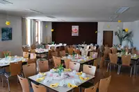 Die Räume sind hell und freundlich. Die Vier-Bett-Zimmer boten auch genügend Platz für die Kinder. Die sanitären Anlagen sind sauber und gepflegt. Das Haus ist gut erreichbar, aber doch im Grünen, so dass man vieles draußen unternehmen kann - eine tolle Außenanlage Die Schüler haben sich sehr wohl gefühlt und waren auch von Billiard, Kicker und Tischtennis begeistert. Das Essen war reichlich und lecker. Empfehlendswert!