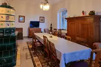 In historischer Atmosphäre bietet unser Herrenhaus Platz für zehn Personen. Zwei Schlafzimmer sind ausgestattet mit Doppelbetten (eins davon mit Babybett), ein weiteres Schlafzimmer mit Einzelbett und Etagenbett, sowie ein Zimmer mit drei Einzelbetten. Küche und Esszimmer im Erdgeschoss bieten für Selbstversorger alle Möglichkeiten. Eine kuschelige Leseecke, mit Blick über unsere Wiesen, lädt zum Verweilen ein.