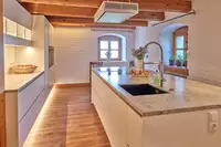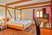 Im Gästehaus befindet sich noch eine ca. 110 m² Wohnung, die "RuheOase", welche mit 1 großen sowie 1 kleineren Schlafzimmer ausgestattet ist. Bitte sprechen Sie uns gerne darauf an, wenn Sie mit einer größeren Gruppe (über 15 Personen) anreisen und die Wohnung (max. 4 Personen) mit hinzu buchen möchten.