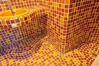 Jedes Zimmer verfügt über ein individuelles, mit Mosaik gefliestes, Bad.