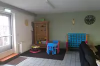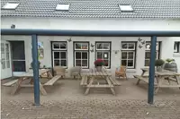 Im Erdgeschoss gibt es einen Flur mit 2 Toiletten, das Wohnzimmer mit einem Smart-TV mit einer KPN-Digitalbox und einem Google Chromecast, einen Spielbereich für Kleinkinder, Esstische und eine Küche, eine überdachte Terrasse mit Picknicktischen.
