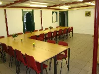 Die Anlage wird an eine Gruppe gleichzeitig vermietet.Es besteht aus einem geräumigen Speise-/Freizeitsaal mit Bar (ohne Zapfanlage) und Feuerstelle. Abhängig von der Gruppengröße gibt es hier genügend Sitzgelegenheiten mit Fernsehen. Die Küche ist vollständig eingerichtet, Sie können hier für die gesamte Gruppe die Mahlzeiten zubereiten. Unten befinden sich 6 Schlafzimmer: 5 Sechspersonenzimmer und eines für acht Personen. Diese Zimmer haben eine eigene Dusche und Toilette. Zusätzlich gibt es unten 6 extra Toiletten und 2 Duschen.