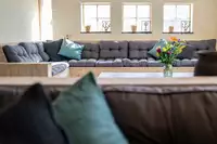 Der Hof verfügt über 56 Betten in vier Schlafräumen und drei Schlafzimmer (2x4 und 1x3, meist Etagenbetten). Ein Schlafzimmer im Erdgeschoss verfügt über barrierefreien Zugang. Der Hof besteht aus zwei geräumigen Salons mit Sound-System, eine komplett ausgestattete professionelle Küche und ein Esszimmer / Spielzimmer mit Tischtennis / Darts, etc. Auf dem weitläufigen Hof gibt es eine versunkene Sitzecke, mehrere Terrassen, ein Fußball- / Volleyballfeld und einen großen Garten.Für Schulen gibt es ein separates Bürogebäude mit Klassenräumen, eine Bibliothek und ein Labor. Darüber hinaus bietet das Hotel die Möglichkeit, Konferenzen und Meetings zu veranstalten. Es ist auch möglich, Fahrräder zu mieten. Wenn Ihre Gruppe größer ist als 56 Personen, dann ist es für die dort zu Hause Bücher (auf Anfrage) möglich.