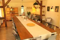 Wir waren in der letzten Woche mit 17 Personen im Gruppenhaus. Es ist einfach super gewesen. Die Einrichtung ist einfach Spitze. Viel Platz im Haus. Auch ein riesiges Grundstück mit direktem Zugang zum See. Perfekt. Die Küche ist mit allem eingerichtet, was man für eine Gruppe braucht. Es ist ein riesiger Grill vor Ort. Kurzum- es geht kaum besser. Wir haben uns rundum wohl gefühlt. Sehr gute Preis/Leistung!