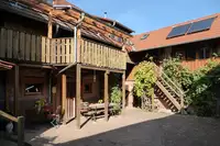 - Ideal für Kinder: Viel Platz zum draussen Herumspringen, hauseigener Spielplatz mit Baumhaus, Eselreiten, bei Regenwetter ist die ausgebaute Scheune mit Tischtennisplatte sehr praktisch. - Sehr nette unkomplizierte Familie. - Möglichkeit, sich zu Mittag/Abend bekochen zu lassen, ist sehr praktisch und gut. - 15 Personen ist Maximum, sonst wird Küche zu klein.