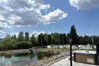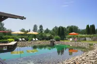 Schwimmteich mit holzbefeuerter Sauna.