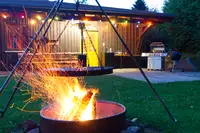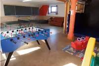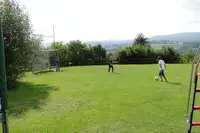Großer Spielplatz und Lagerfeuerplatz, Aufenthaltsraum, Waschraum, Fitnessraum, Bolzplatz, Kicker, Tischtennis und Boulderwand.