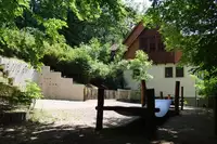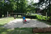 Spielwiese mit Seilbahn, Kinderspielplatz mit Rutsche, Schuakel und Klettergerüst, Lagerfeuerplatz, Grillplatz, Bolzplatz, Beach- Volleyballfeld, Boulderwand, Boule-Bahn, Tischtennis