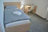 Einfach aber stilvoll eingerichtete Einzelzimmer mit Bett, Schrank, Schreibtisch und -stuhl, sowie Smart-TV, Dusche im Zimmer. Die Dusche ist ebenerdig begehbar und verfügt über einen Rainshower-Duschkopf.Freizeit
