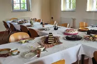 Sie können das ganze Haus buchen oder eine der zwei Etagen, dann teilen Sie sich das Haus ggf. mit einer anderen Gruppe. Es gibt ein Bad je Etage, wobei die Duschen auf der ersten Etage sind. Wir bieten Ihnen: 25 Schlafplätze, Selbstverpflegung (Küche ist max. für 60 Personen ausgelegt), Seminarräume, einen großzügigen Garten, der auch für Zelte geeignet ist, Bildungsangebote, Halbpension auf Anfrage (ab Mitte 2023), Bademöglichkeit am See. Über unsere Großküche können gern Mittag- und Abendessen dazu gebucht werden,Bildungsangebote