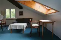 Kapazität: Bei Einzelbelegung: max 32 Gäste, bei Doppelbelegung: max 46 Gäste (18 EZ/14 DZ), Lesezimmer, Partykeller, 2 Gruppenräume, Kapelle mit Orgel, Tagungsmedien, Videoanlage, Beamer, Internetanschluss, Klavier/Flügel, Gesellschaftsspiele, TischtennisFreizeit