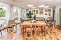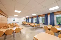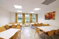 Cafeteria mit Terrasse, Beamer, CD- und DVD-Player, Flipchart, Pinnwand, Overheadprojektor, Magnetwand, Moderationskoffer, Leinwand, Musikanlage, Whiteboard, TV, WLAN. Klavier, Digitalpiano, Tischtennisplatten, Tischkicker, Spielplatz für Fuß- und Volleyball, Fahrradkäfig, Liegewiese.Freizeit